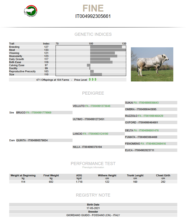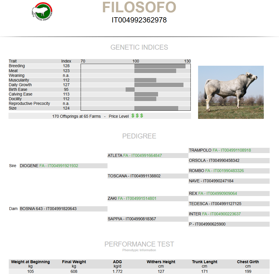 De beste Italiaanse genen, passend voor uw dieren. Van onderstaande stieren, getest door het teststation Anaborapi, is nog voorraad beschikbaar.*